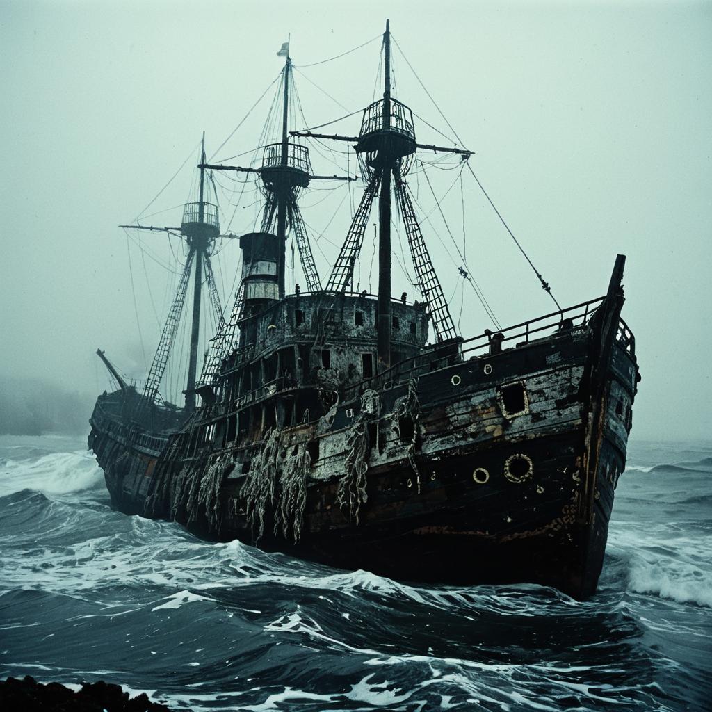 Ghost Ship in Foggy High Seas