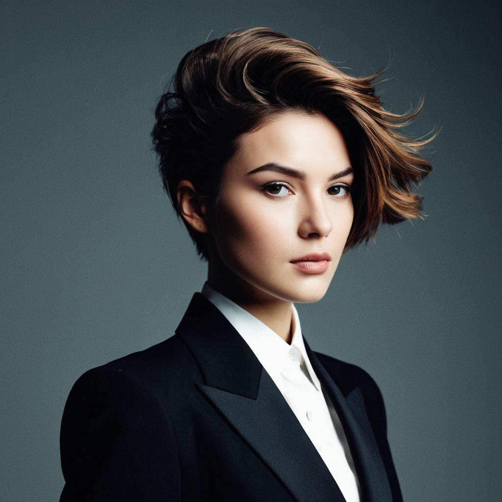 Fashion Model with Tapered Cut Hairstyle in Formal Attire