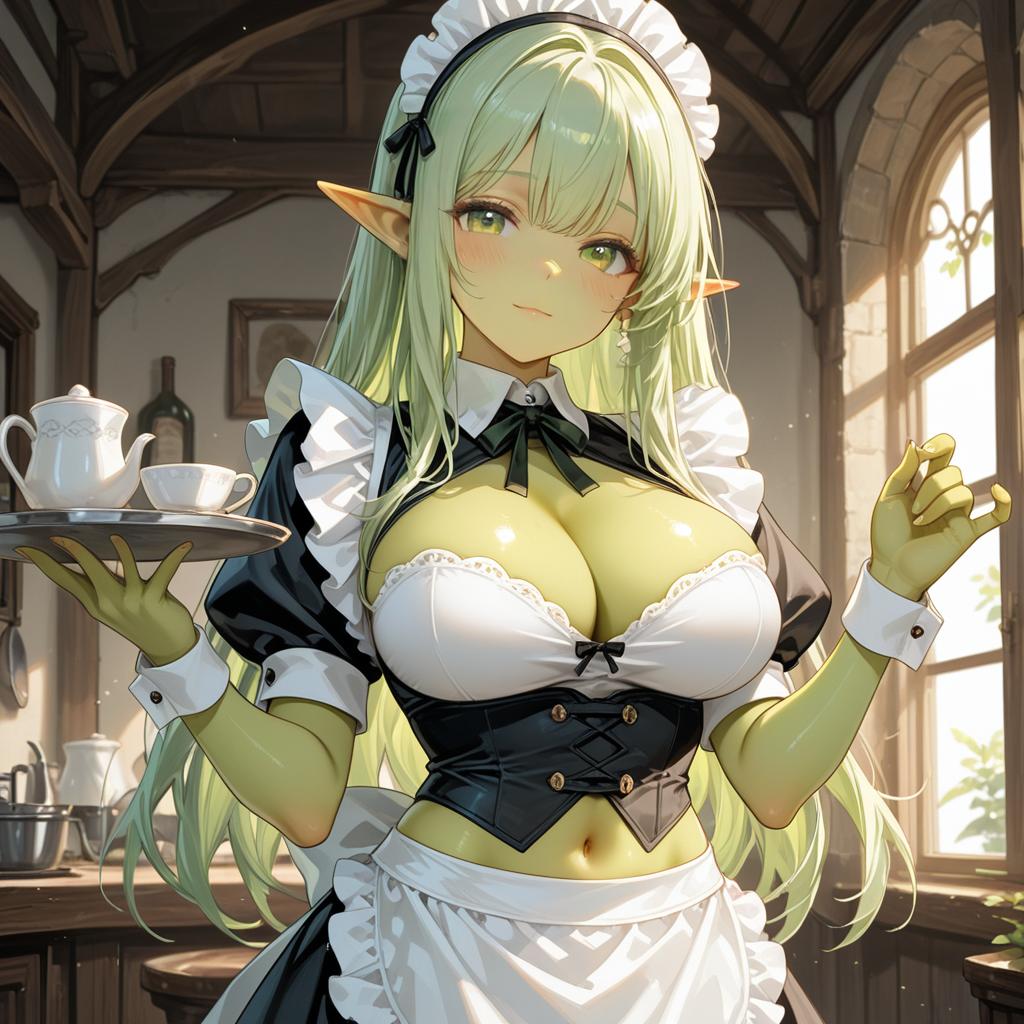 Charming Elven Maid with Green Features