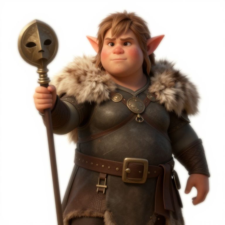 Masking character design,fat halfling female,halfling baker::4,short,clean-shaven,dungeons and dragons,fantasy,tolkien,fur armor,