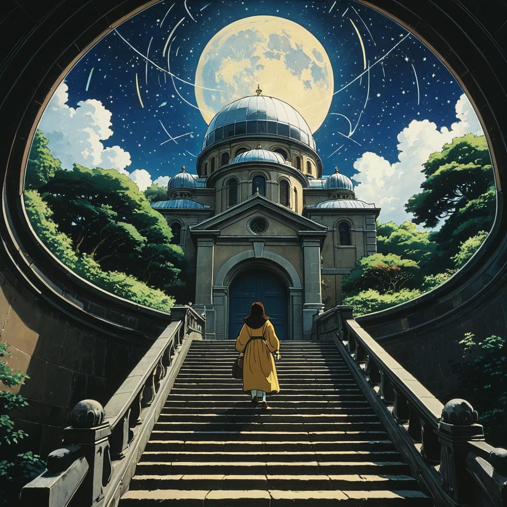 Ada Lovelace ascending to the Underwater City in Castle in the Sky, created by Studio Ghibli, hyper-detailed.