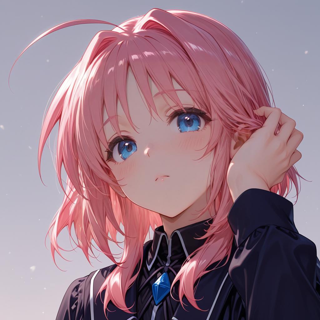 Caro ru lushe, lyrical nanoha, 1girl, blue eyes, pink hair, ahoge, by artist kabocha (monkey4), dark_illustrious