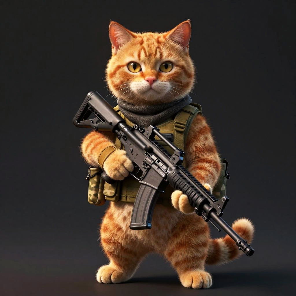 Absurdres, (realistic:1.5), (masterpiece, Extremely detailed CG unity 8k wallpaper, best quality, highres:1.2), (ultra_detailed, UHD:1.2), perfect illumination, rim lighting, sidelighting, volumetric fog, god rays, (dark background:1.3), (meerkat desert sentinel commando (sandy-tawny fur, alert upright stance, reinforced neck scarf, lightweight desert tactical harness, insulated gloves, slim anthropomorphic build):1.4), (furry:1.1), animal, solo, standing, tactical armor, gloves, load bearing vest, pouches, holster, camouflage accents, derelict solar farm at golden-hour dusk with cracked photovoltaic arrays, tilted rusted pylons, drifting sand devils, long warm god rays, heat-haze and dust-filled volumetric fog, holding, weapon, gun, suppressed collapsible 9mm PDW with sand-blasted suppressor, warm amber muzzle glow, compact reflex optic, tactical sling and faint muzzle smoke, sling, muzzle smoke, cinematic DOF, particles, unreal engine, (no humans:1.2), blurry background