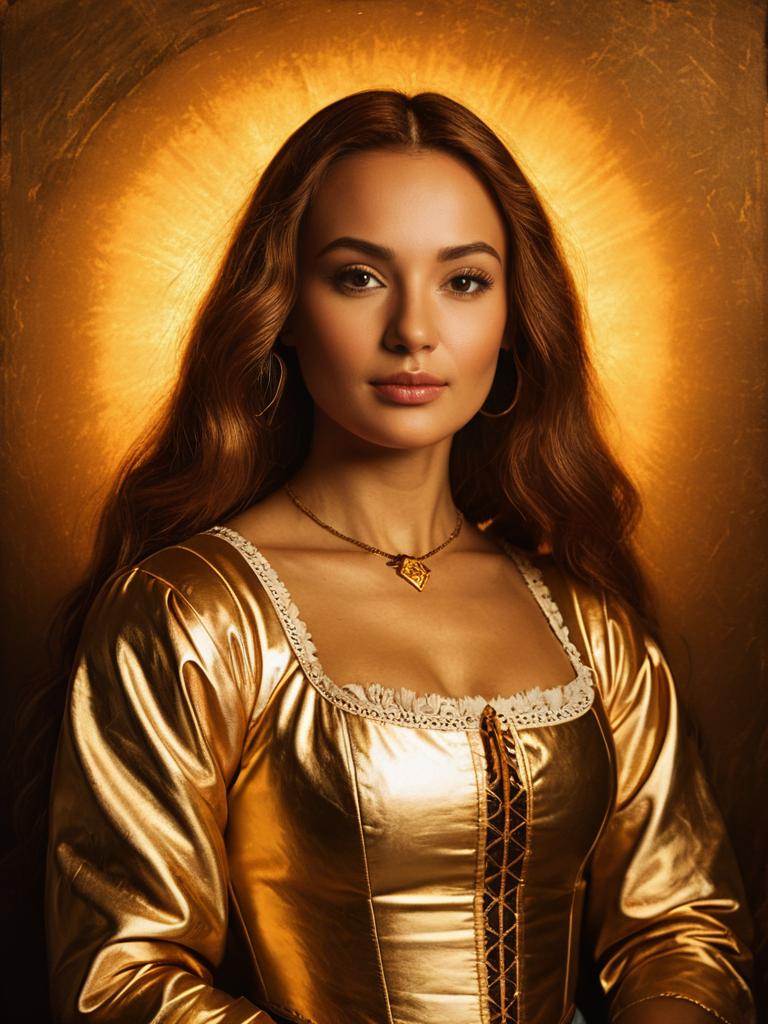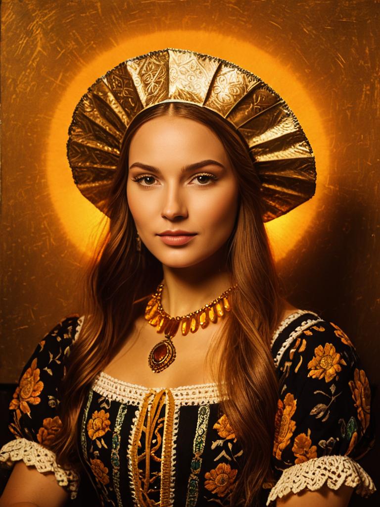 Woman, boho-chic, long sleeve crop top in neutral tone with detailed sun and moon illustration surrounded by floral patterns, scoop neck, distressed denim shorts, frayed hem, high waist, light wash, studio background with seamless paper. --sref 1389