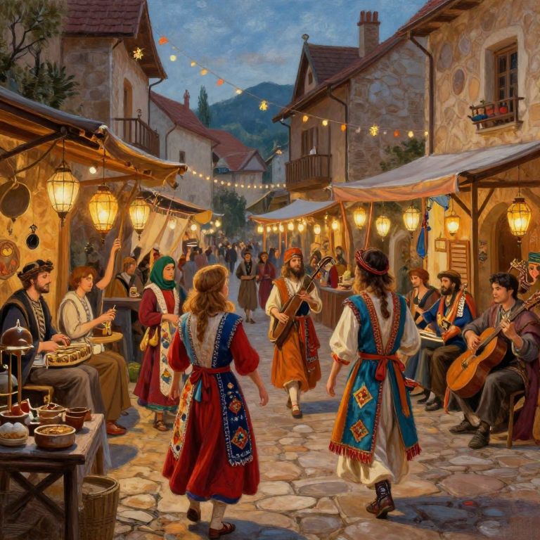 Ancient Marketplace Oil Painting Scene