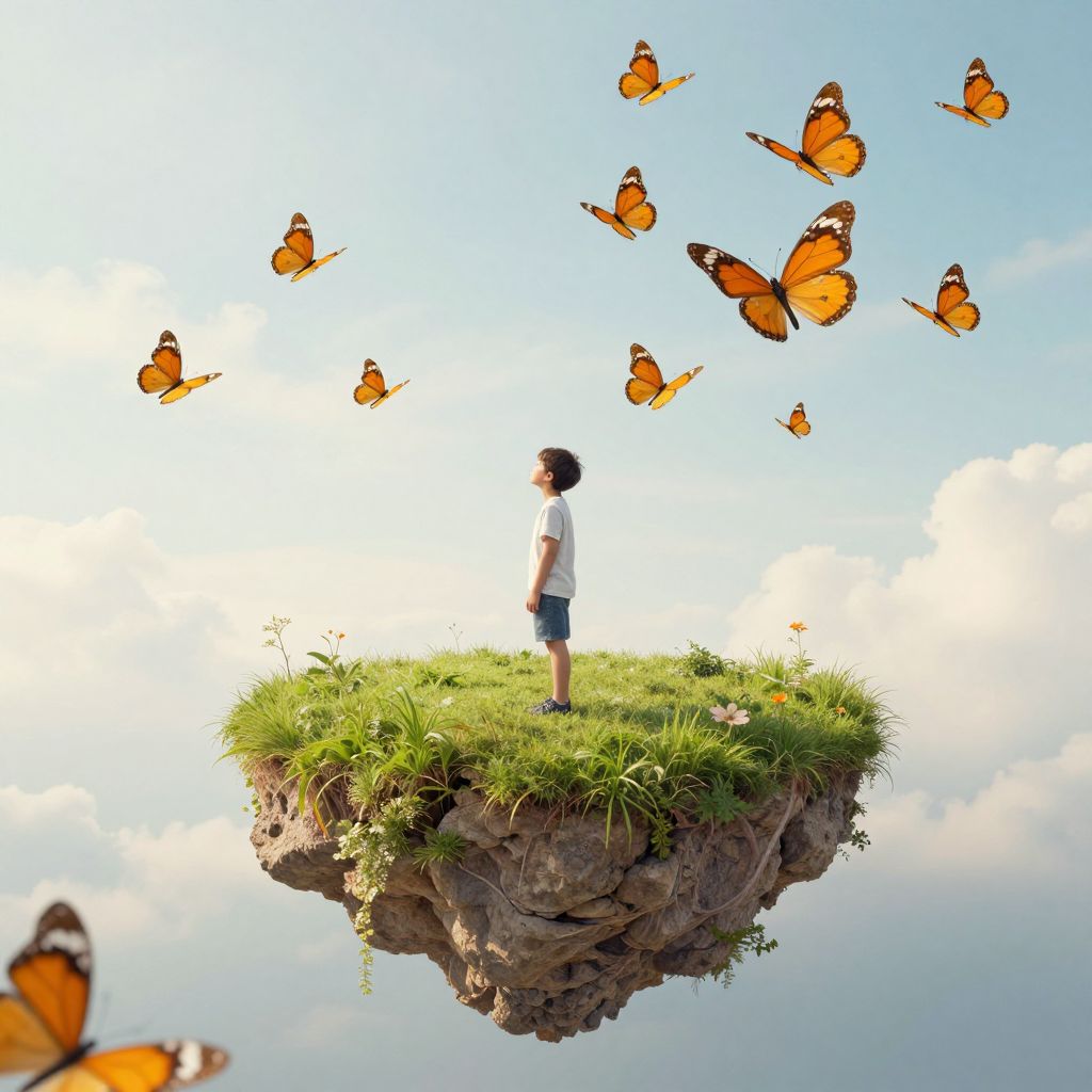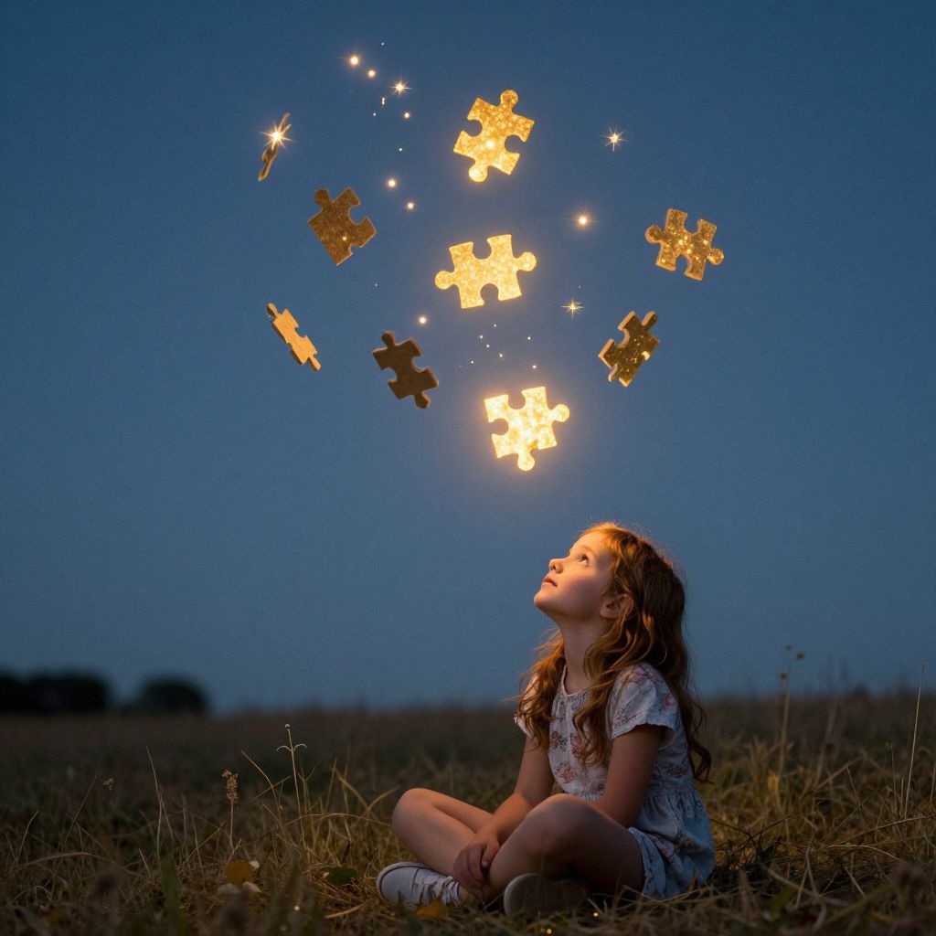 A child floats in midair, drawing constellations in invisible ink that ripple like water and come to life at night.