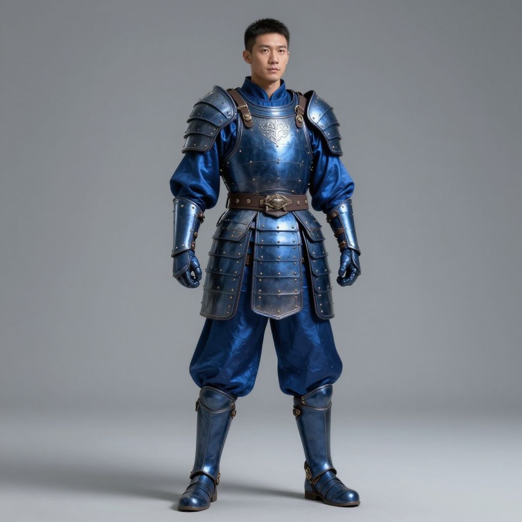 Hyper-Realistic Warrior Armor in Blue Silk