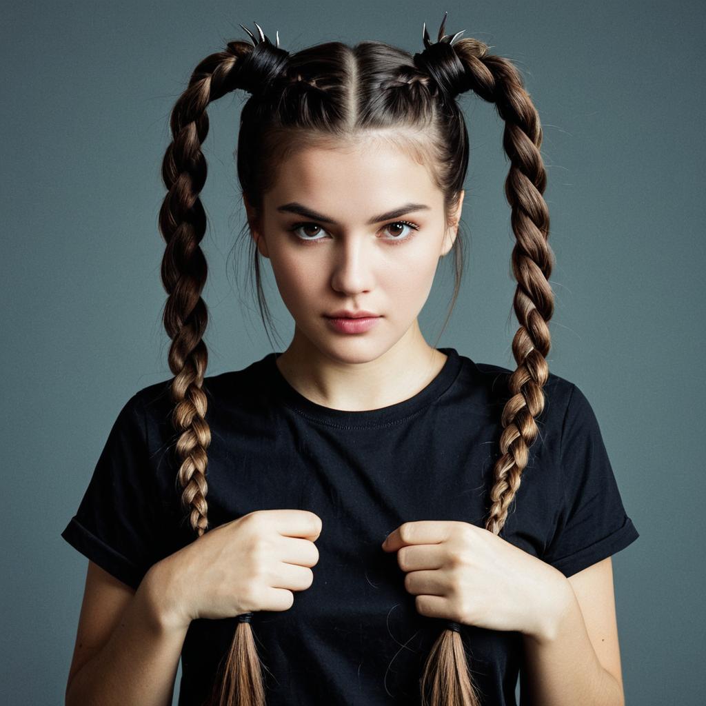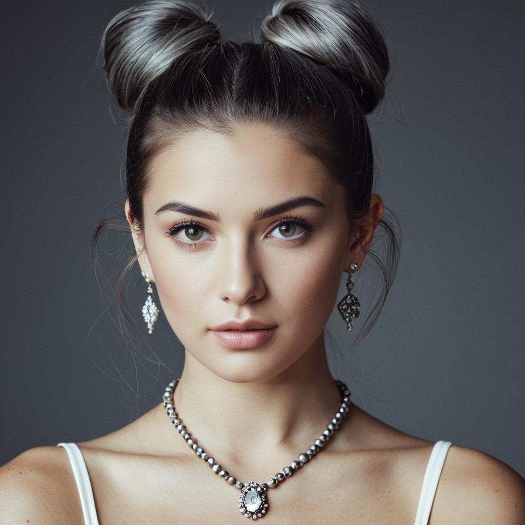 Portrait of Woman with Braided Hairstyle and Jewelry