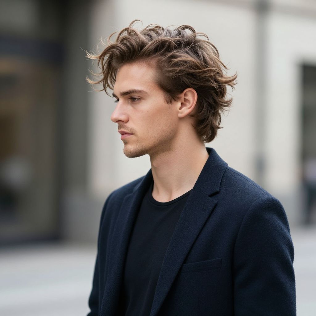 German male model posing confidently in modern urban streetwear, standing against a graffiti-covered brick wall, soft natural lighting highlighting chiseled features, sharp jawline, and stylish tousled hair, capturing edgy fashion vibes, high detail, 4k