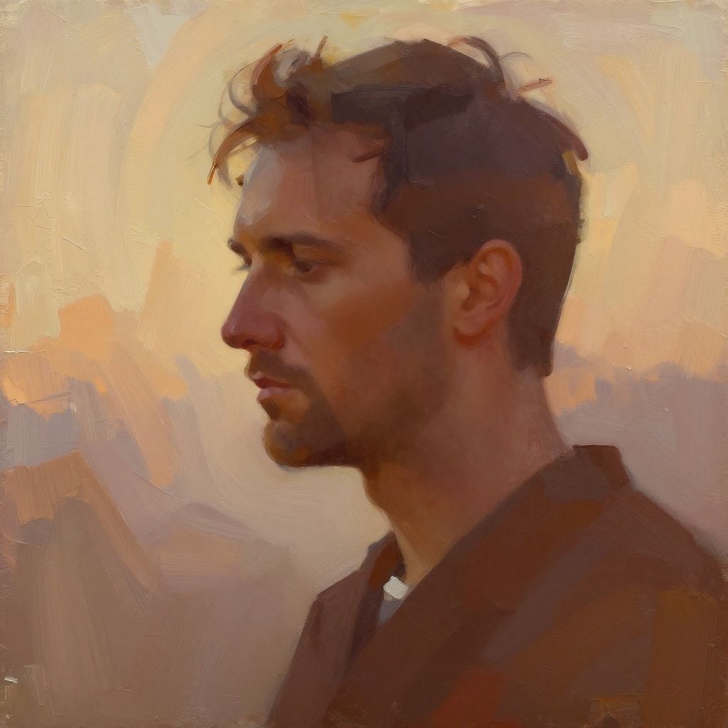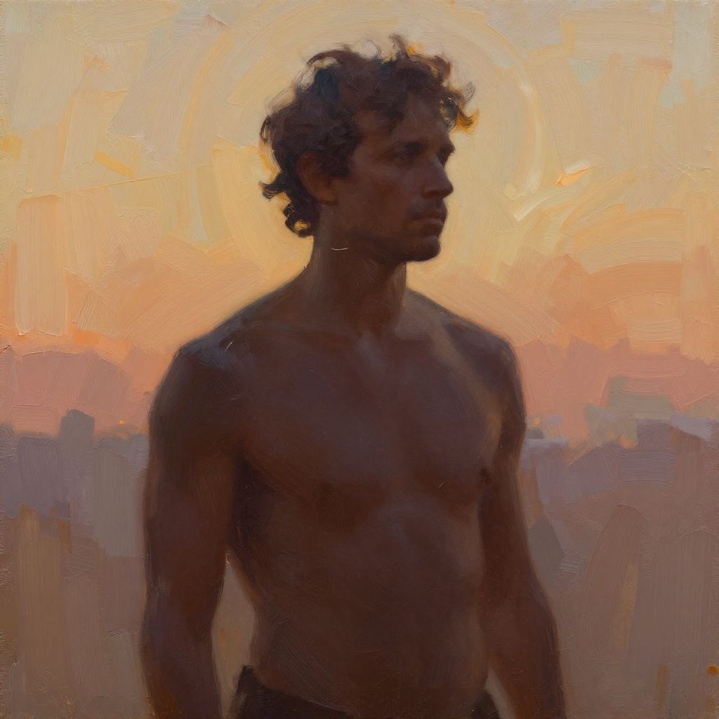 Patrick Wilson butt in artistic form, painterly style with bold brush strokes, warm tones, focus on silhouette and curves, abstract background with soft gradients