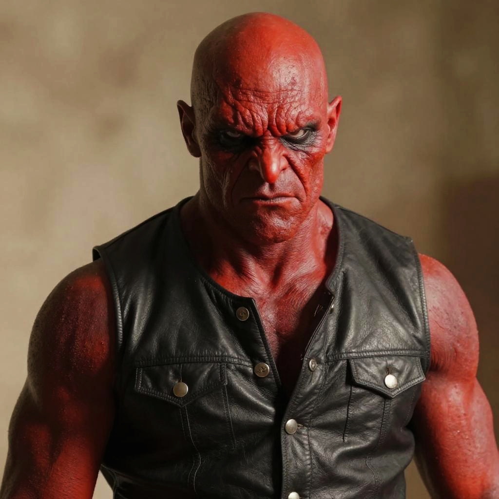 Red-Skinned Muscular Soldier Portrait