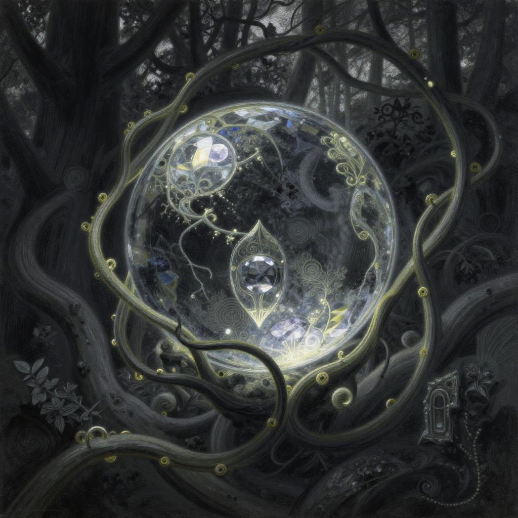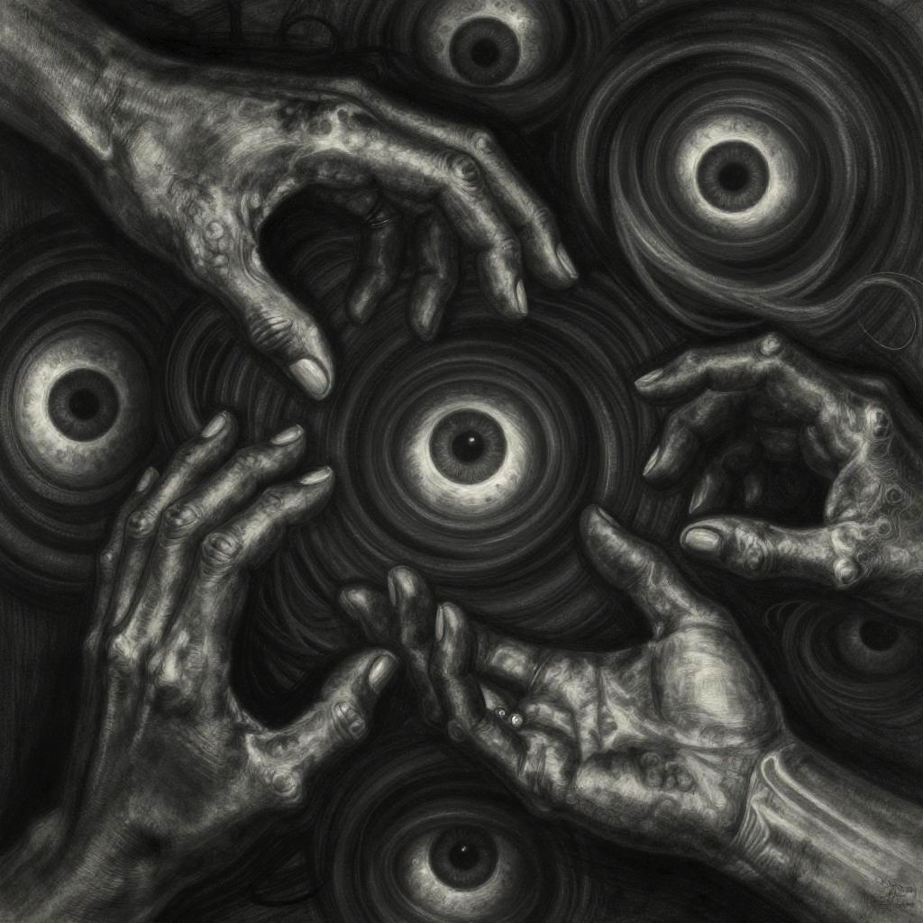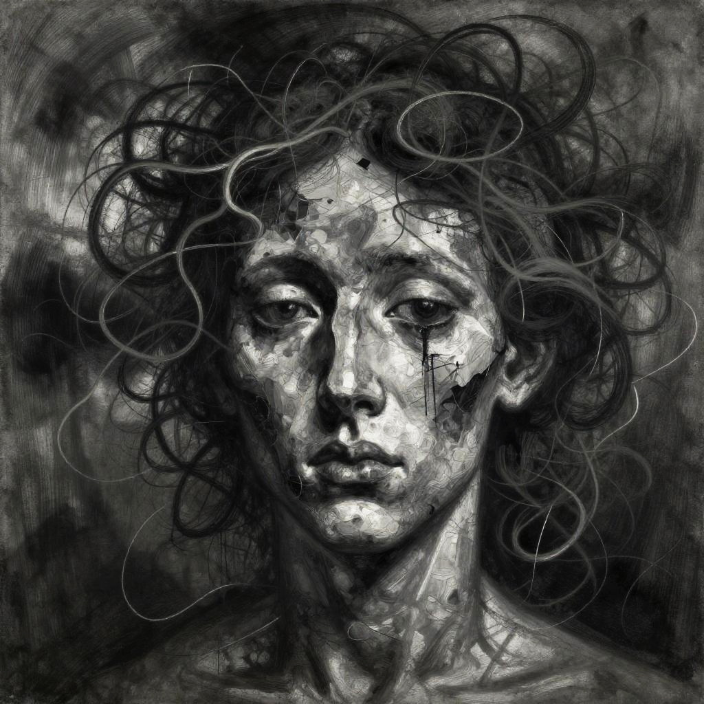 Charcoal painting by Odilon Redon depicting a whimsical cat with oversized eyes, with playful colors, intricate fur patterns, and swirling whiskers, in a fantastical meadow, with a joyful and playful mood, highly imaginative and symbolic