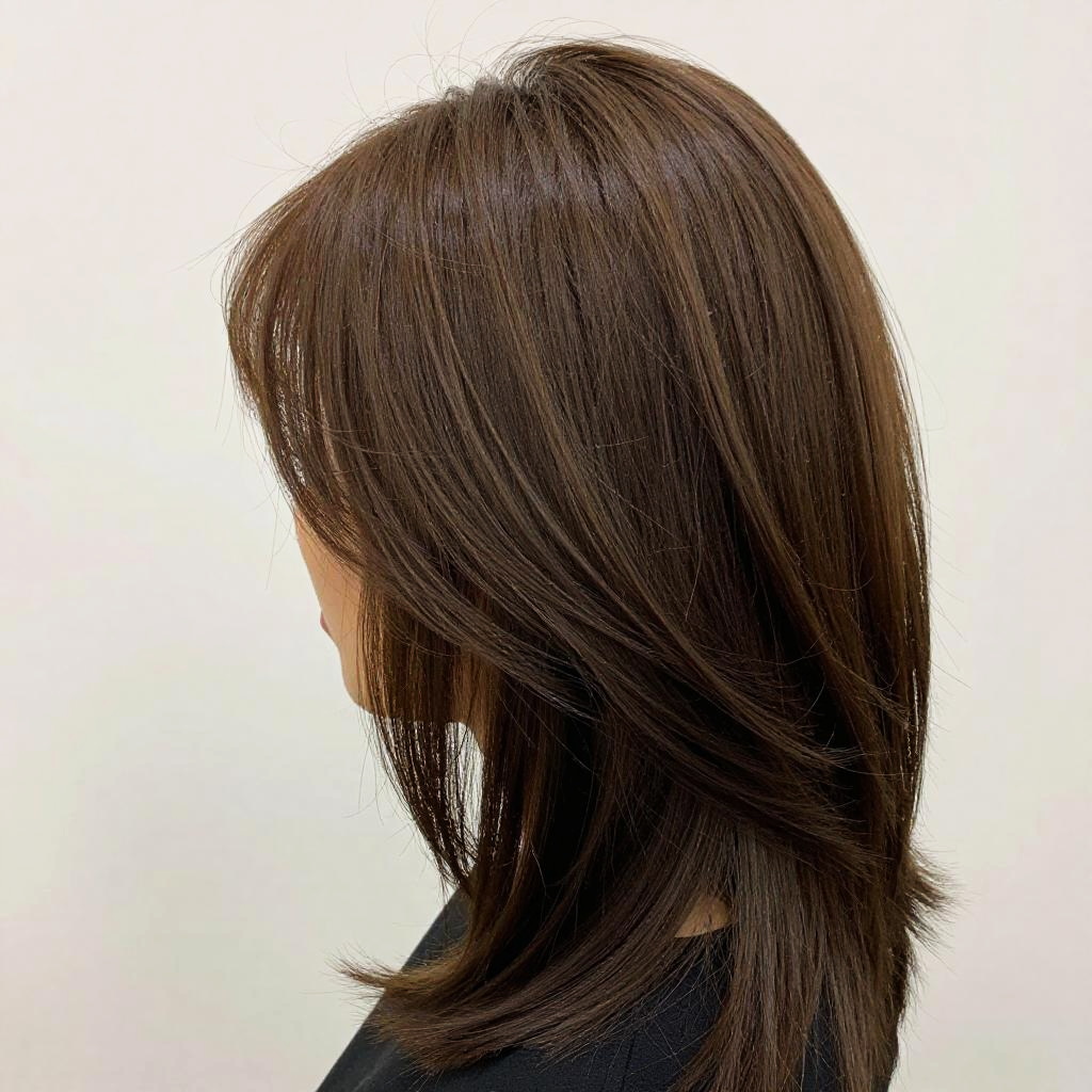 Close-up of the back of a two block haircut with precise blending and layering, cool toned lighting, minimalistic background focusing solely on hairstyle intricacies