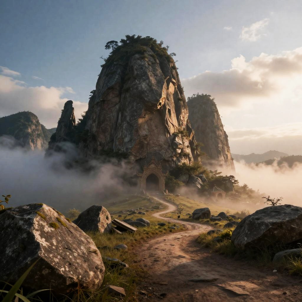 Best quality, establishing photo, epic and beautiful landscape, hdr photo, magical fantasy aesthetic, hyper realistic photograph, 12mm f/16, trending on flickr