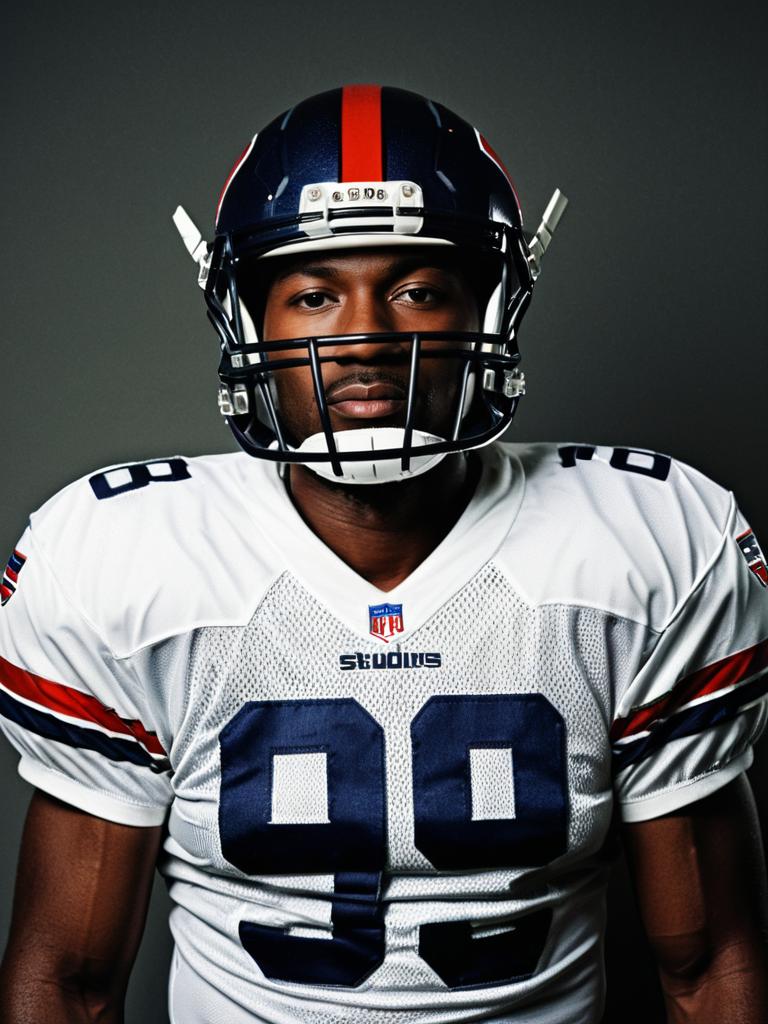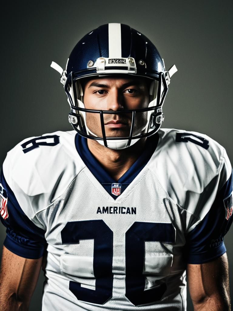 Man in American Football Uniform, photorealistic studio portrait with sharp detail