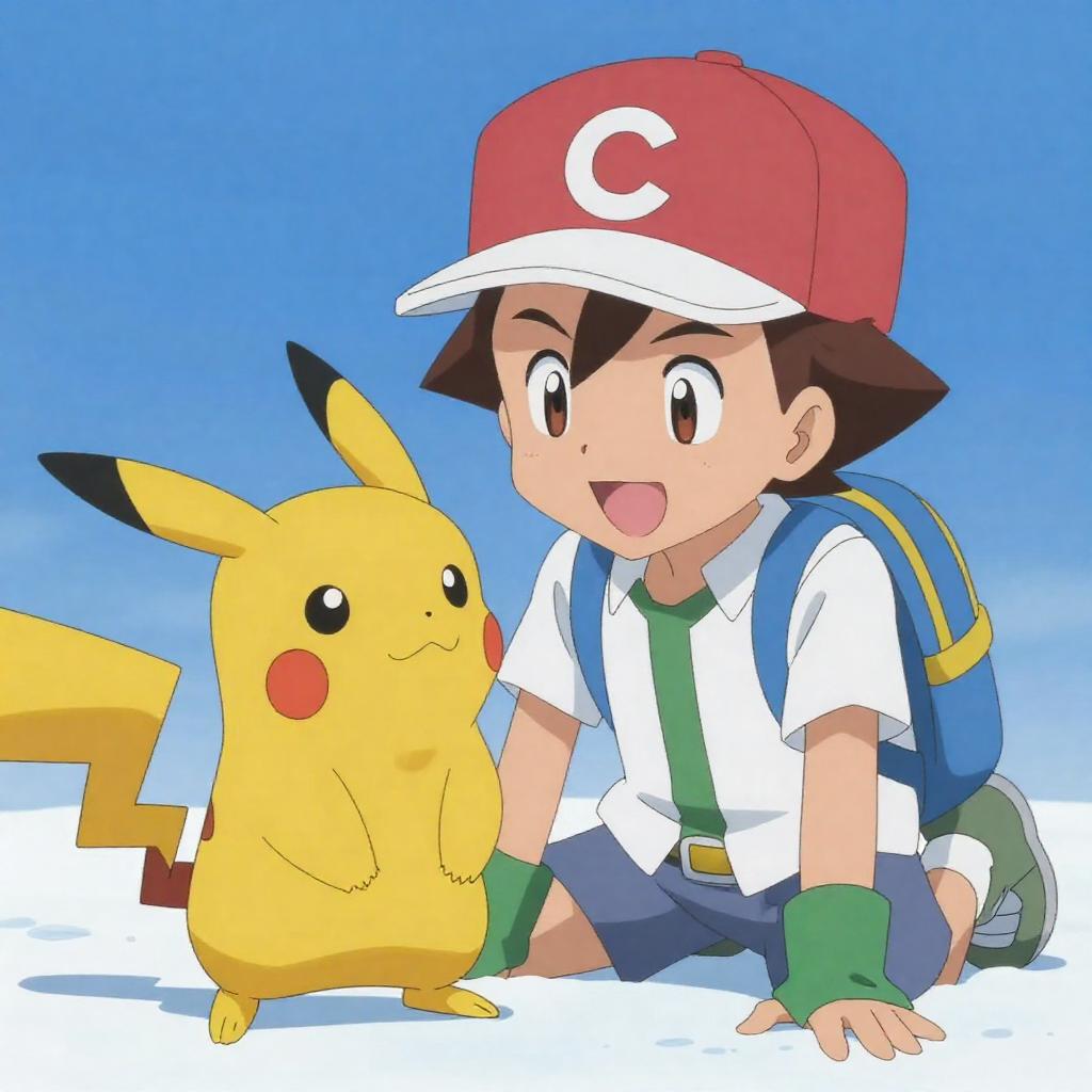 Anime-style drawing of a young girl with black hair and a red cap, riding a large white wolf with sharp teeth. Forest background with green trees and blue sky. Girl's left arm rests on wolf's back, right hand holding reins. Wolf's head is turned slightly to the left, eyes focused forward. Girl's expression is determined.