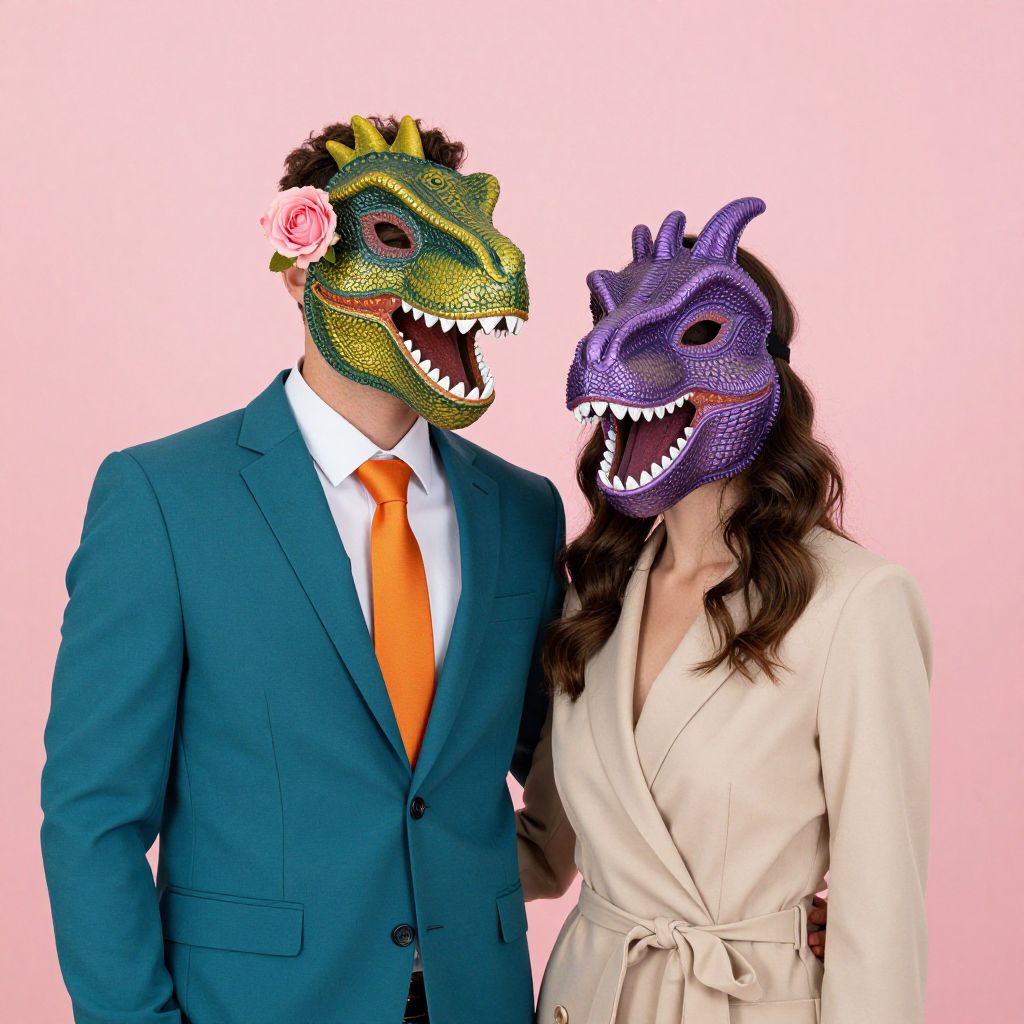 Vibrant Couple in Dinosaur Masks