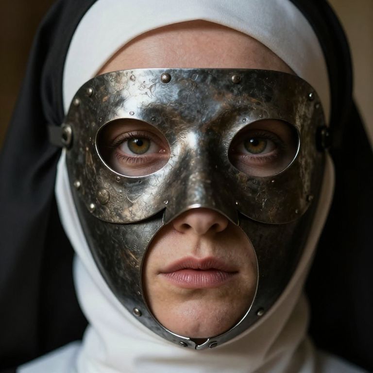Hyperrealistic Nun with Sci-Fi Iron Mask