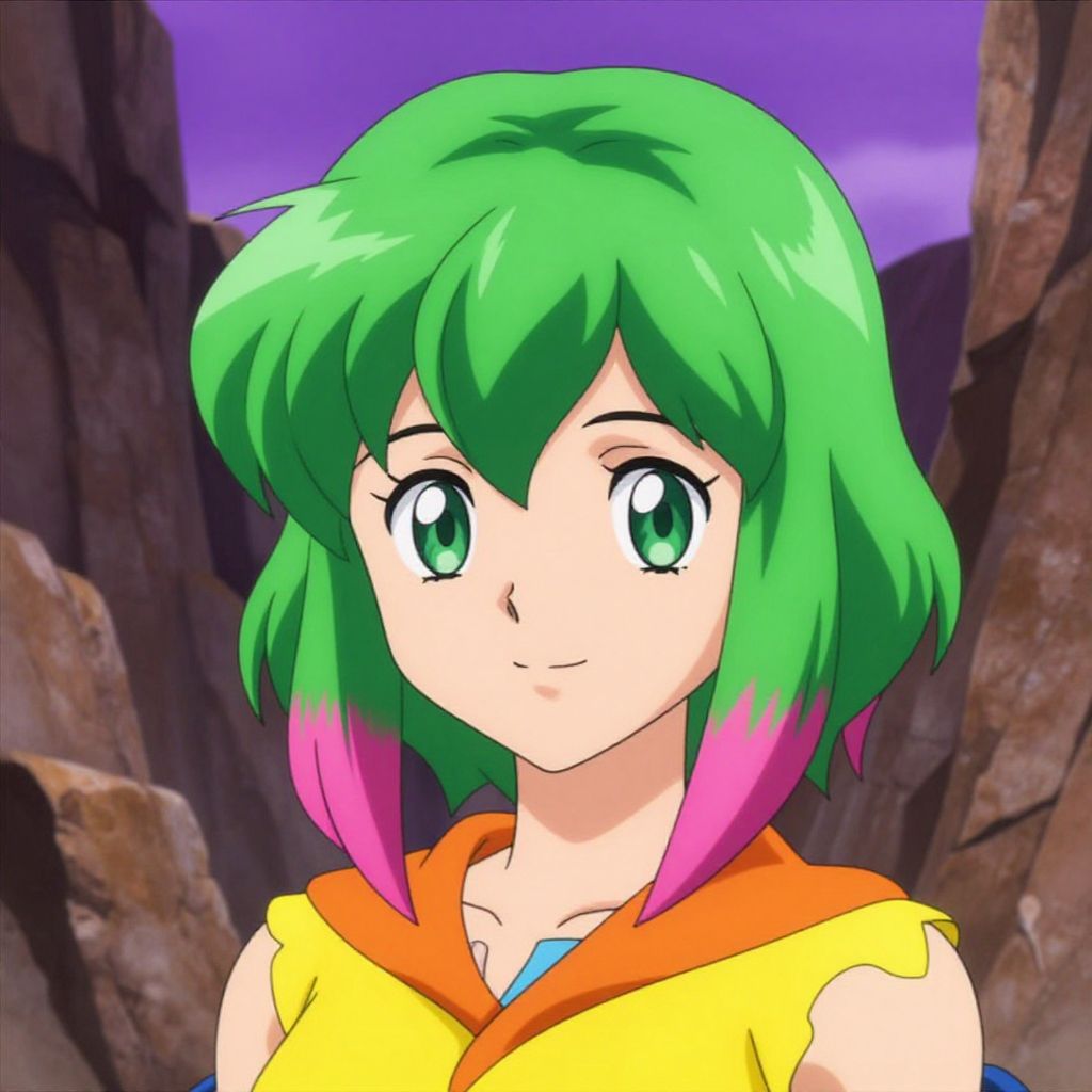 Mystical Green-Haired Anime Woman