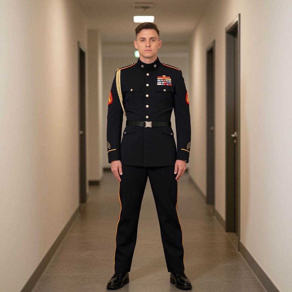 Man in Military Uniform Hallway