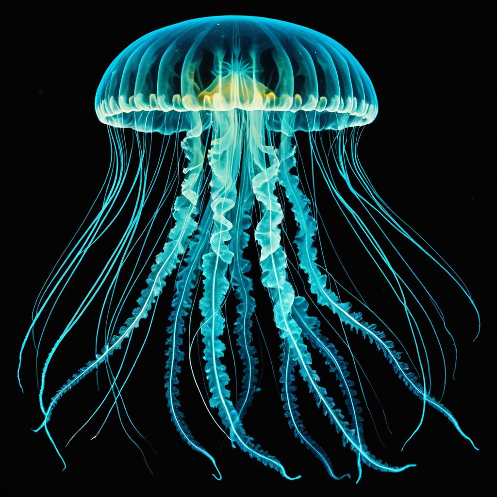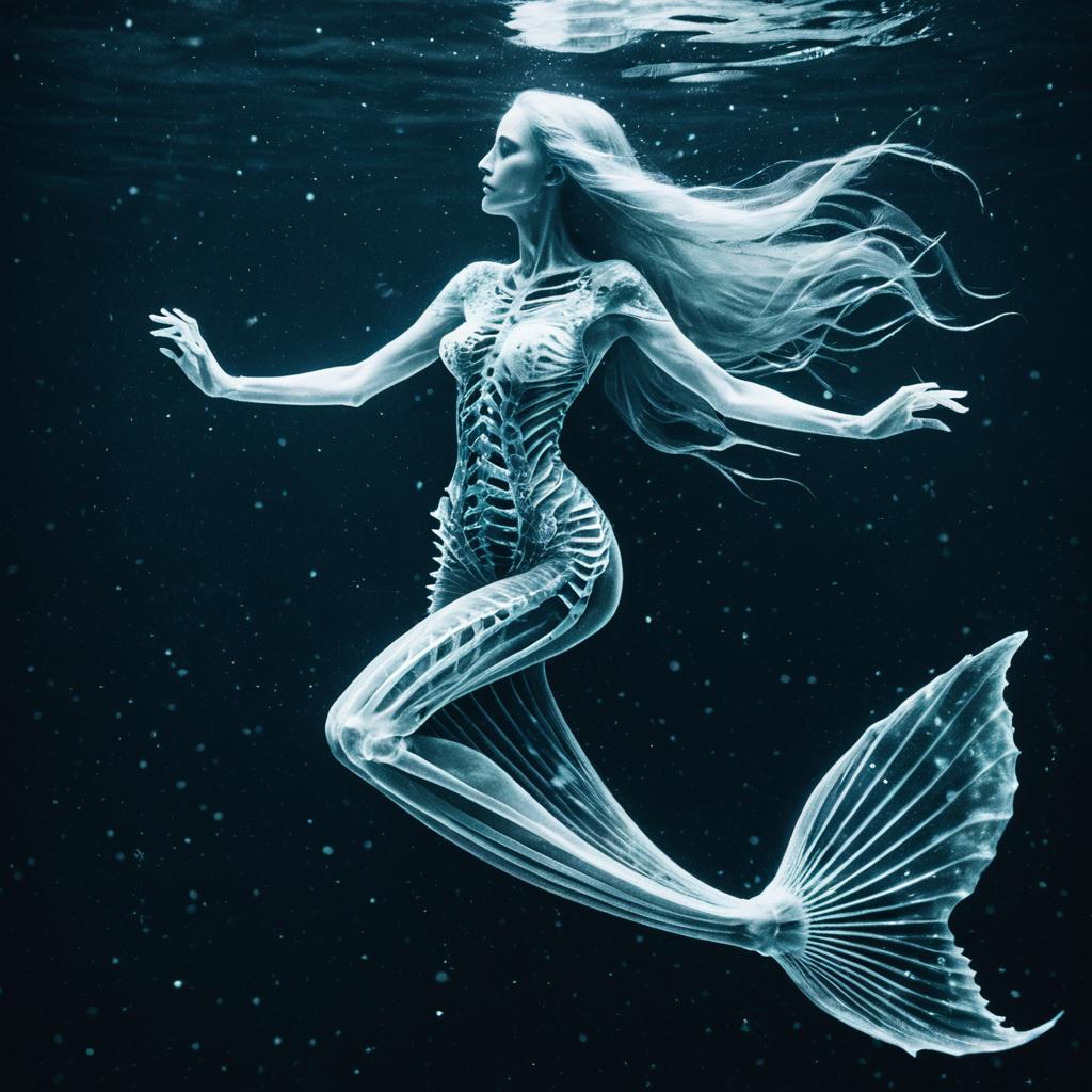 X-Ray artwork of a spectral human dancer, glowing muscular structure with vibrant energy flows, surreal and otherworldly with translucent and radiant effects