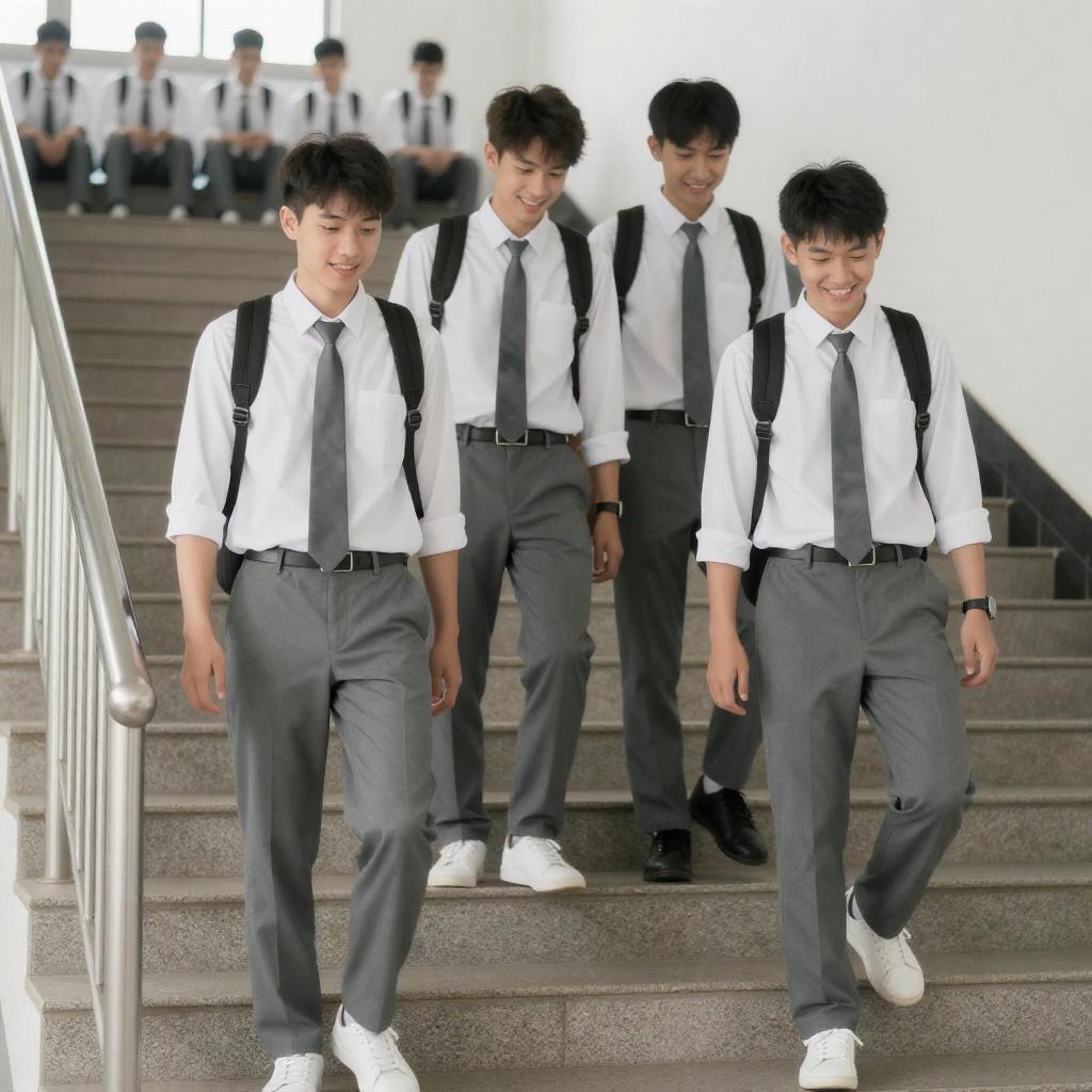 Four Men Walking in Supermarket Aisle