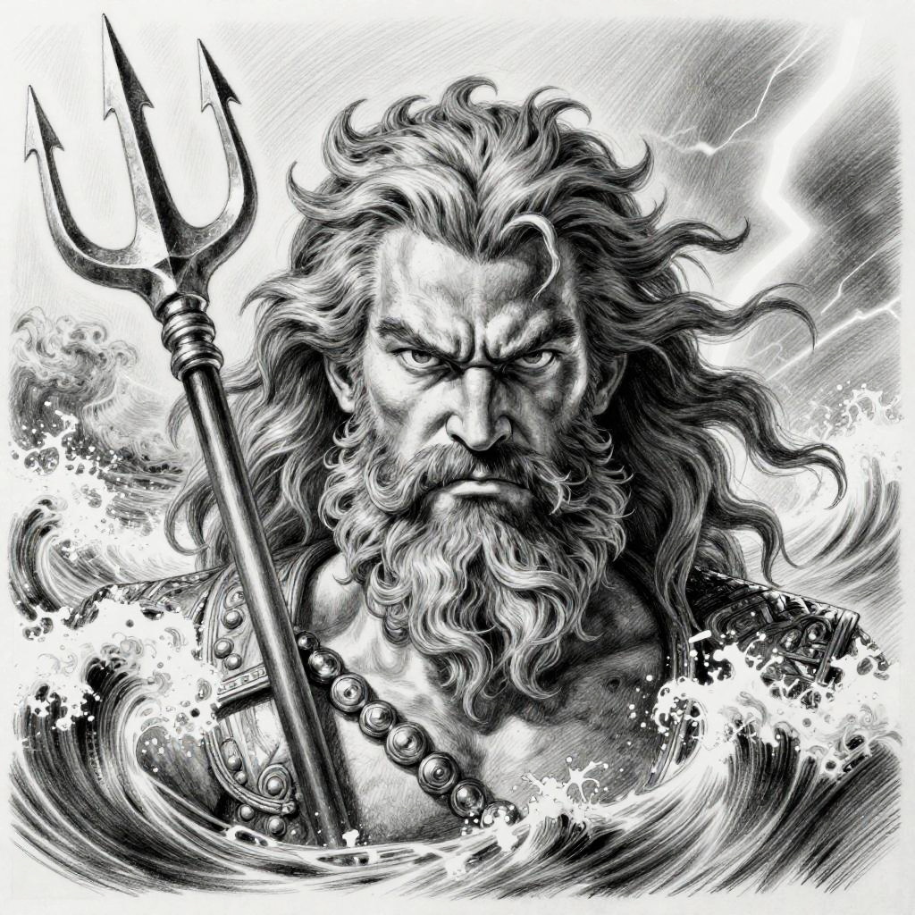 Epic Poseidon Pencil Sketch