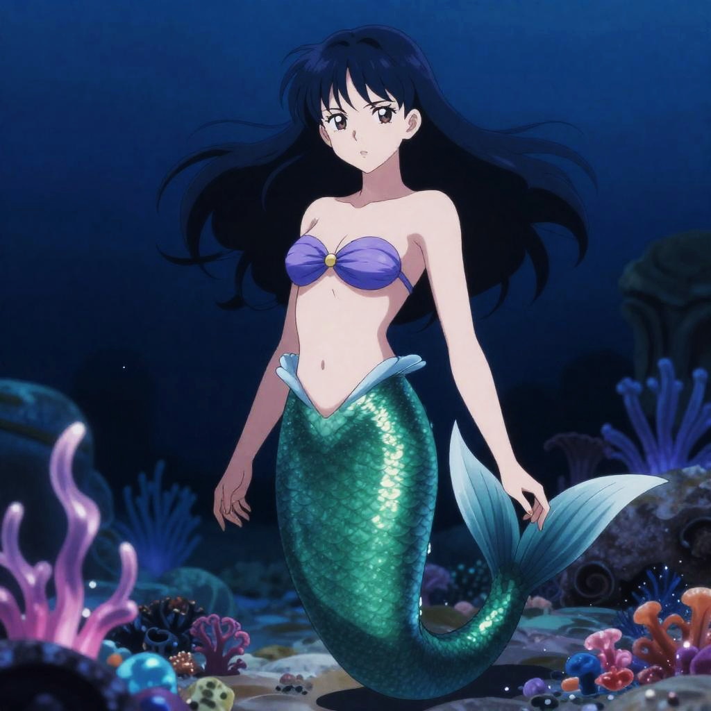 Ecchi art of samurai android standing confidently in a neon rain-soaked bridge, her obsidian black with neon cyan streaks hair flowing in the wind, intense gaze, high-detail anime rendering