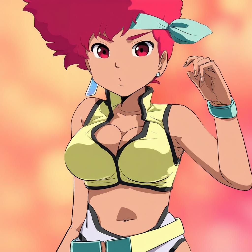 Hapi (fire emblem), fire emblem, 1girl, dark-skinned female, red eyes, red hair, long hair, navel, garreg mach monastery uniform, uniform, garreg mach monastery uniform, uniform, crop top, midriff, by artist simoyuki, anime