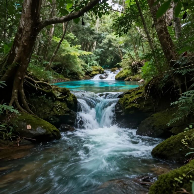Serenity whispers through the azure waters, where the stillness of the forest mirrors a quiet introspection, inviting the soul to wander between the echoes of what was and the promise of what could be.