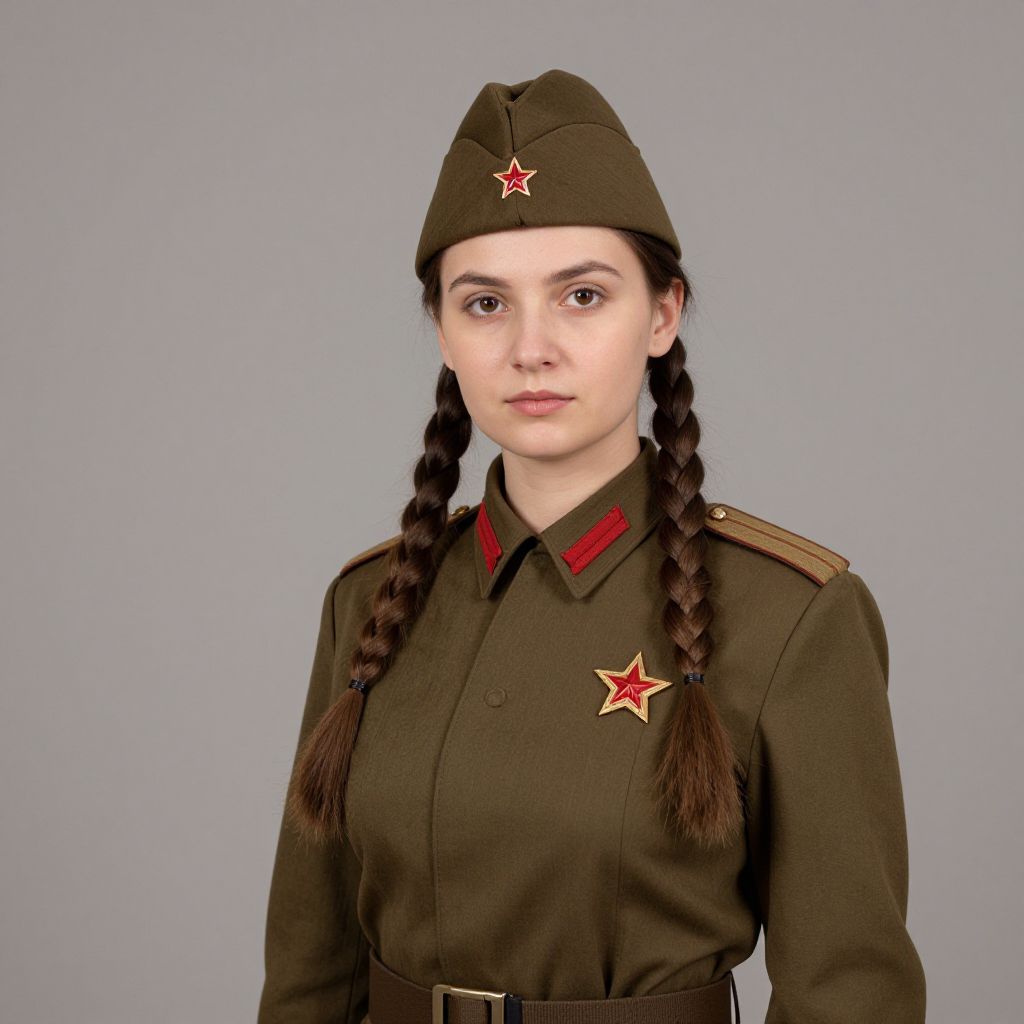 Realistic Soviet Military Girl Portrait