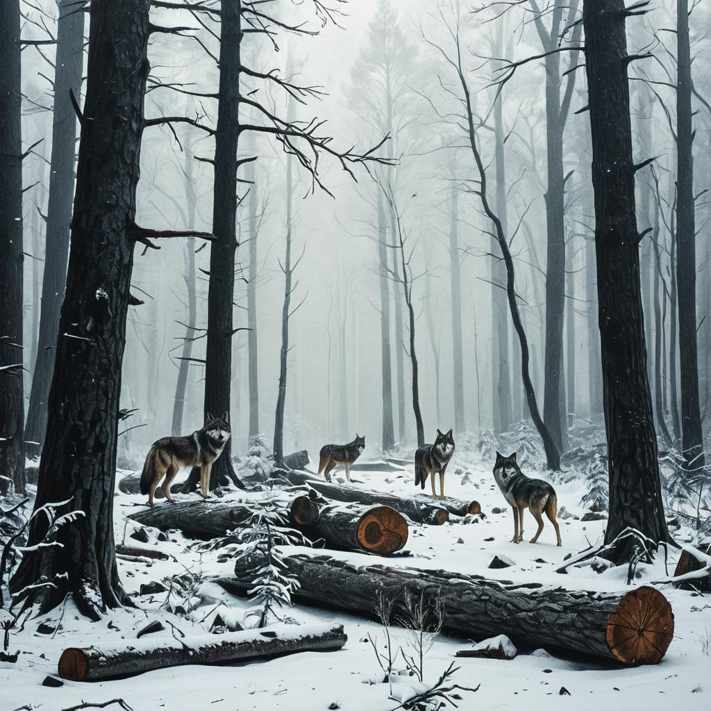 Modern illustration of an alpine lake featuring loons, otters, mountain goats scattered throughout the scene. Styled to resemble a painting, with soft brushstrokes and subtle texturing that give it an artful, hand-painted feel. The winter landscape is filled with crystal clear water, snow-capped peaks, pine trees, creating a serene and tranquil atmosphere. Rendered in a balanced, high-quality composition with a harmonious color palette, capturing the beauty and stillness of nature in a modern, painterly style.