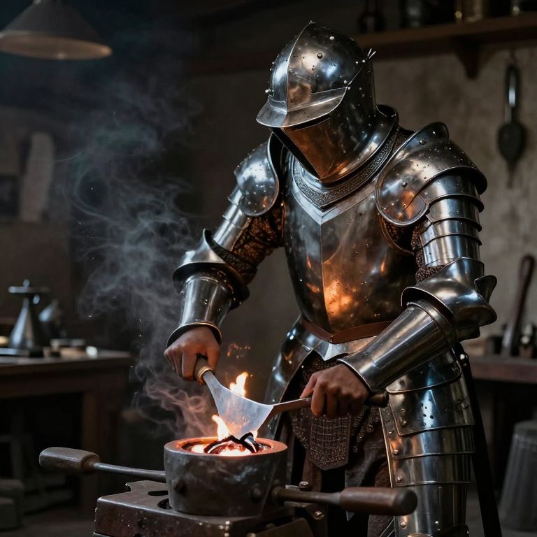 A blacksmith forges armor from liquid shadows, creating suits that grow heavier as the wearer’s insecurity increases.