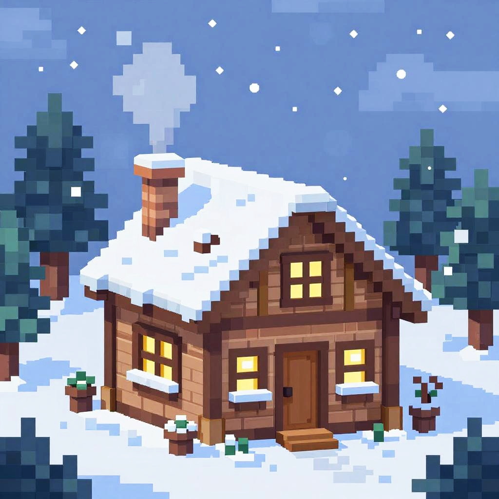 Pixel art landscape of an ancient temple hidden in a snowy tundra, vibrant colors, artstation, deviantart, 8-bit game concept art