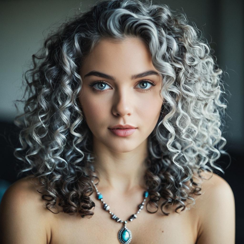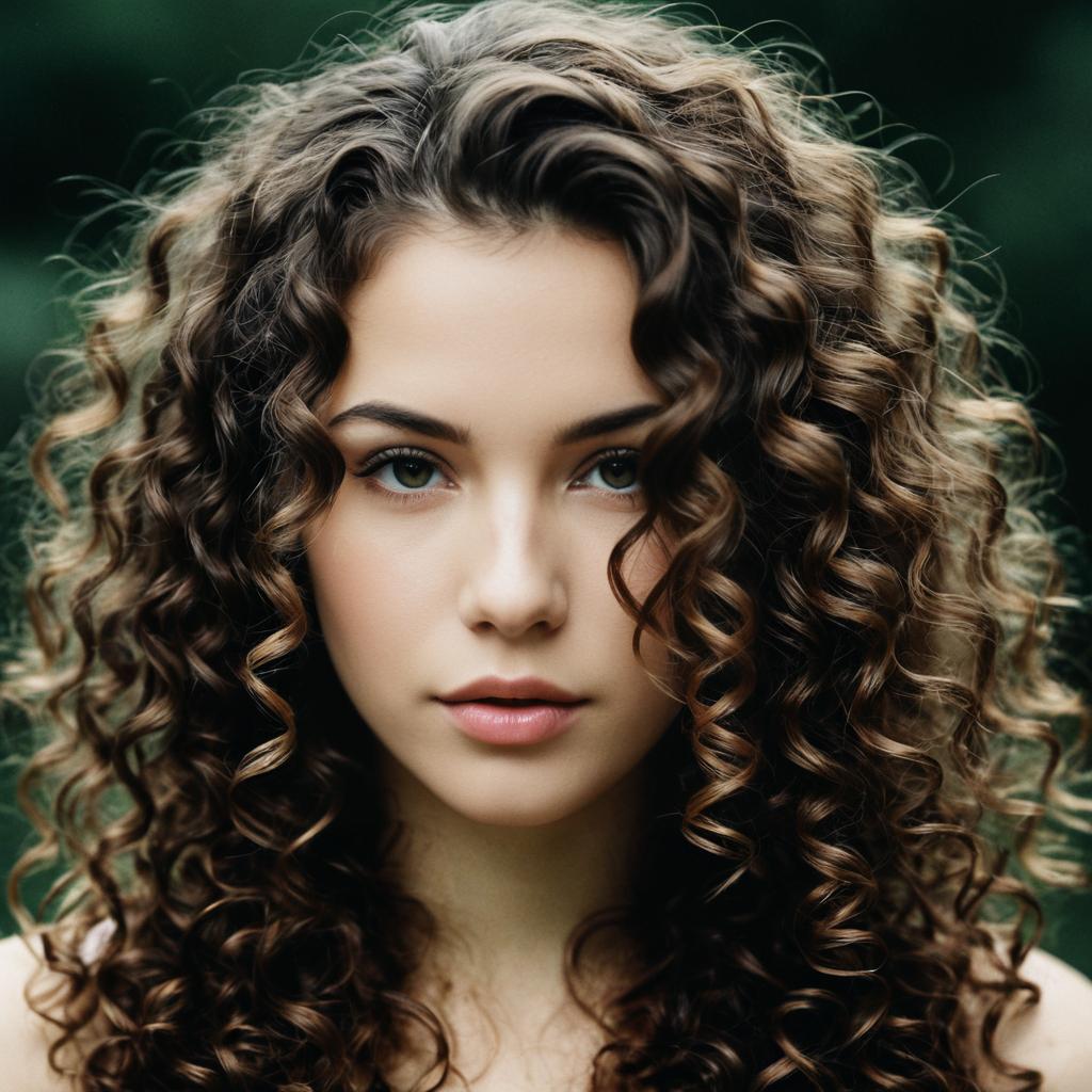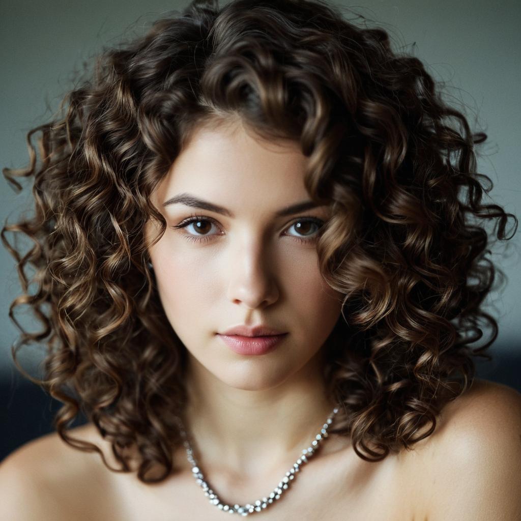 Urban twisted curls,1girl, solo, long hair, brown hair, looking at viewer, curly hair, blurry background, blurry, shirt, grey shirt, realistic, upper body, wavy hair, lips, freckles, jacket