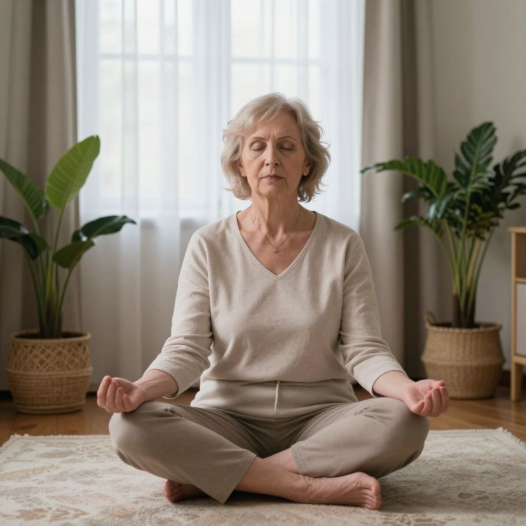 Elderly Woman Meditating in Cozy Room
