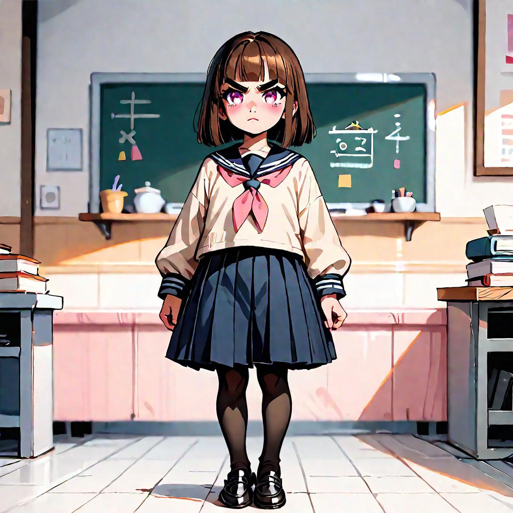 Anime Schoolgirl in Classroom