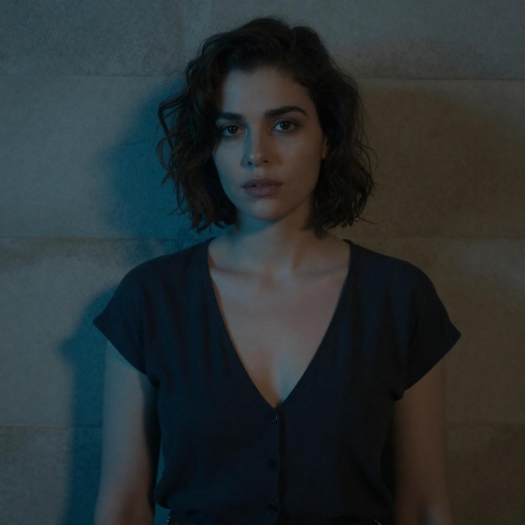 Cinematic Portrait: Woman by Blue Wall