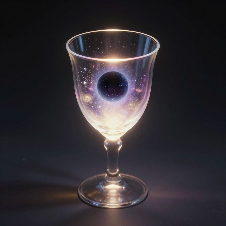 An ethereal chalice cradles the cosmic void, its radiant glow transforming shadow into symphony, evoking a profound sense of wonder and the transcendence of mortal boundaries.