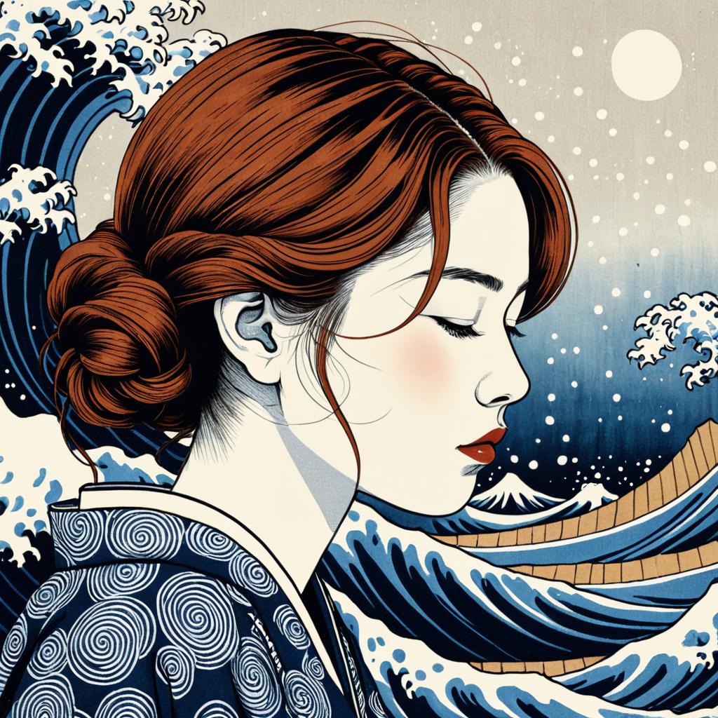 Ukiyo-e Style Portrait of Girl with Chestnut Hair