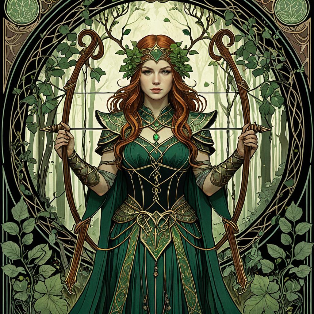 A beautiful dramatic epic ethereal symmetrical painting of a shaman with spirits swirling from his staff | he is wearing tribal face paint and animal skin cloaks | the background is swirling golden clouds | tarot card, art deco, art nouveau | by Ivan Bilibin | trending on artstation