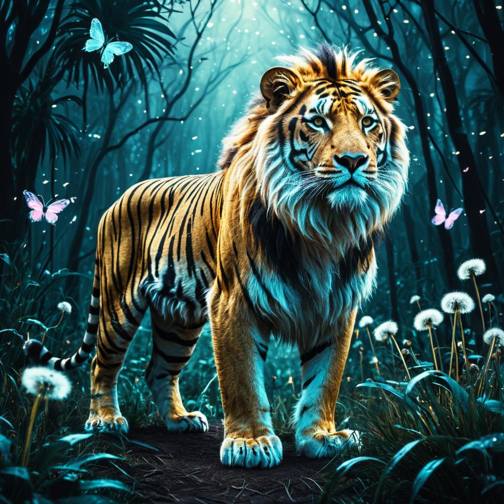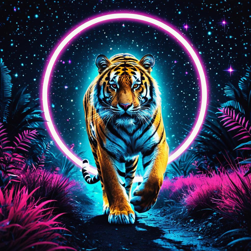 Synthwave Tiger with Neon Halo in Electro Jungle
