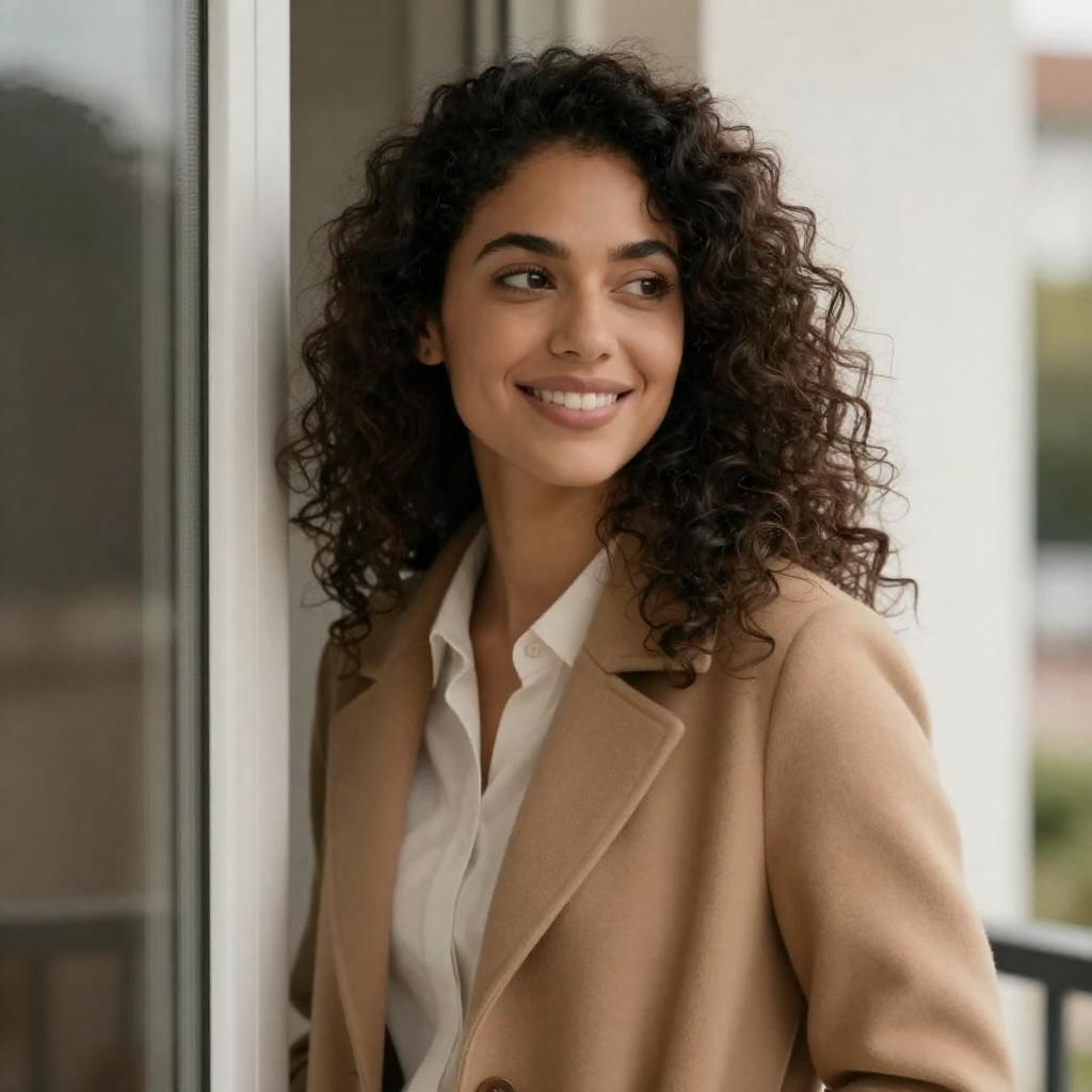 A group of diverse people dancing energetically indoors. The central figure is a young woman with dark curly hair wearing a light purple sleeveless dress, smiling and performing an open hand gesture. Around her, men dressed in pink and purple shirts paired with dark trousers are dancing, along with a woman in a sleeveless red dress laughing. The background shows an industrial-style setting with subdued lighting.