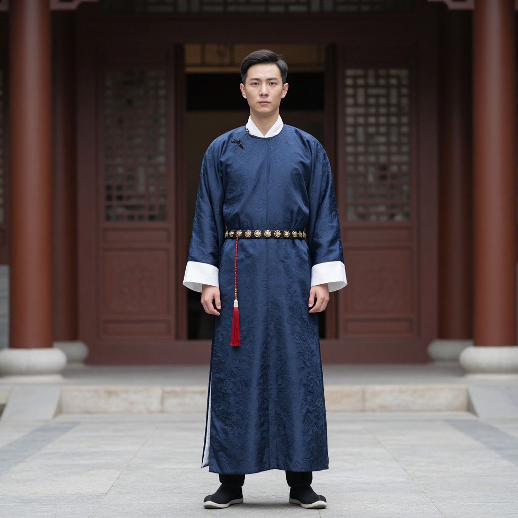 Optional Attire Costume, man in traditional chinese dress standing in front of a building