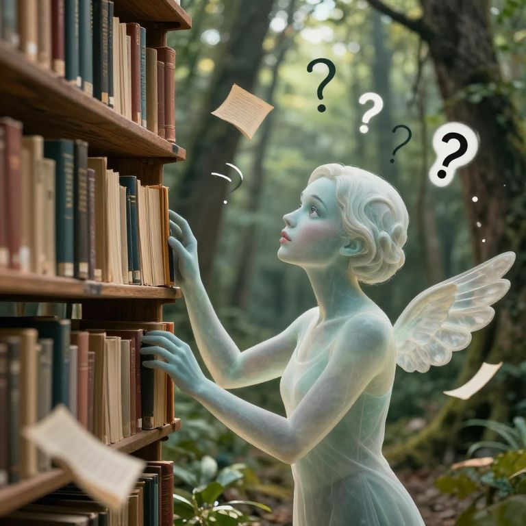 A librarian with translucent skin tends to a forest of living books, whose pages flutter like wings when startled by the echo of unanswered questions.