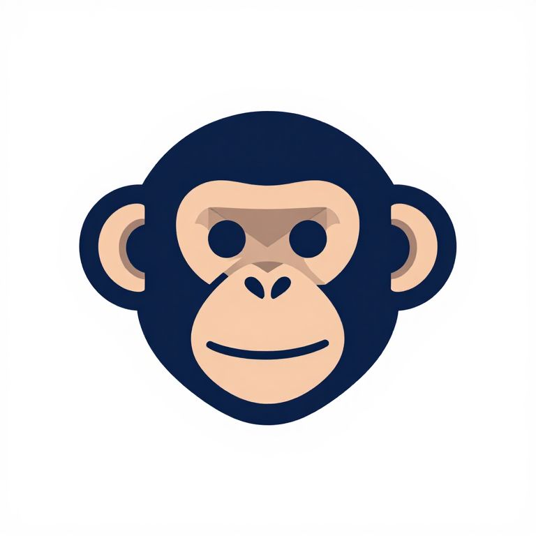 Chimpmail logo idea, a stylized smiling chimpanzee face with mail envelope integrated into the shape, modern flat design with bold contrasting colors, clean lines, minimalistic background, suitable for tech or communication branding.