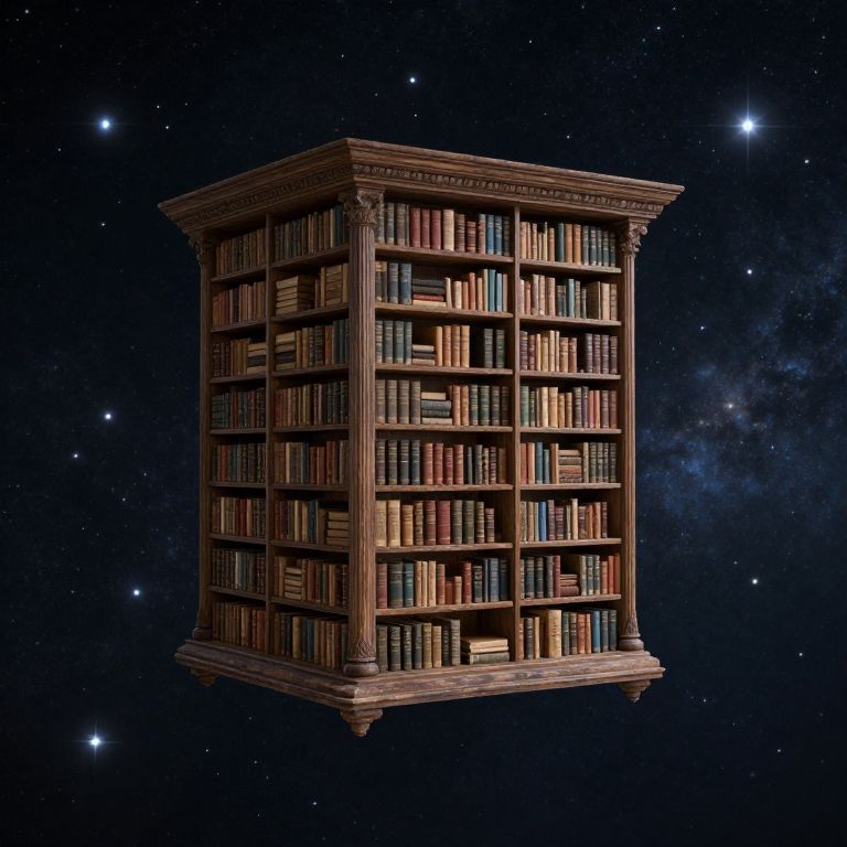 An ancient library floats in the void between stars, its books whispering forgotten languages into the ears of passing comets.