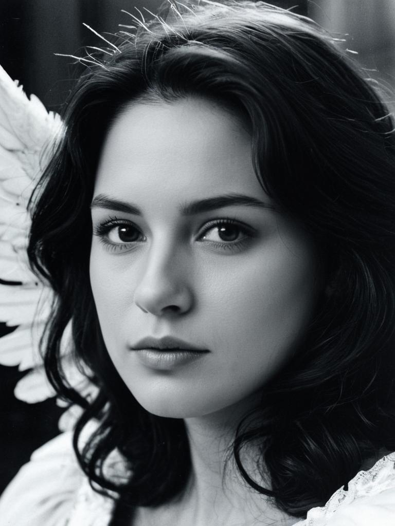 Woman in Angel Costume, close-up detailed headshot, photorealistic realism