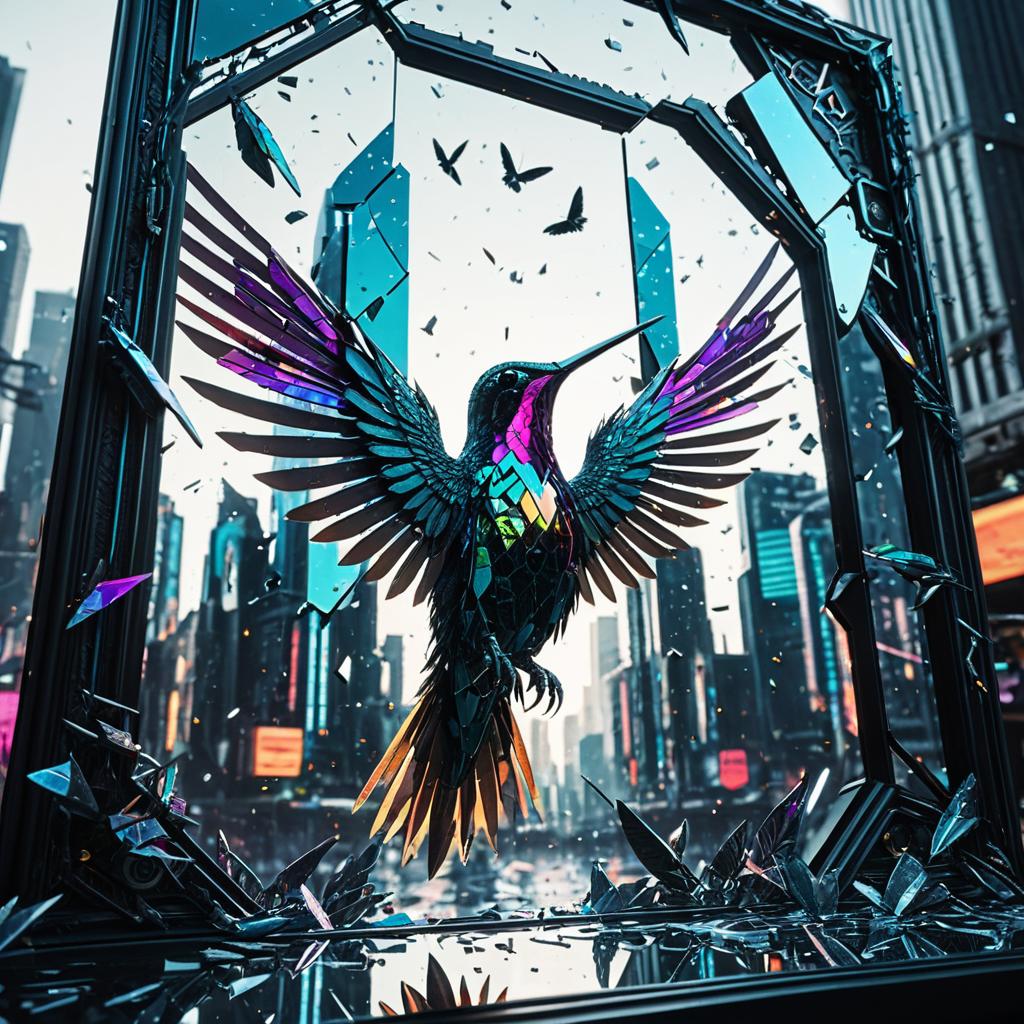 Mechanical Crow in Post-Apocalyptic Cityscape