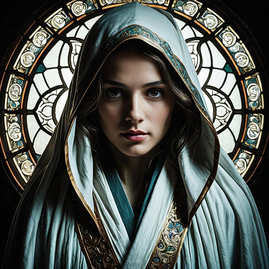 A female human representation of serenity, contrast lighting, detailed eyes and facial features, off-shoulder, ultra-realistic, in the style of Norman Rockwell